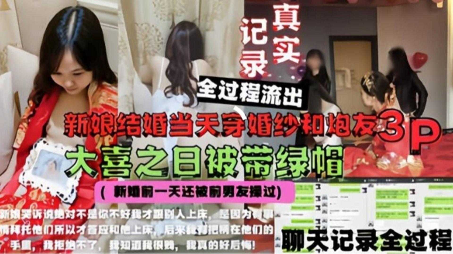 新娘结婚当天穿婚纱和炮友3P,大喜之日被戴绿帽全过程!